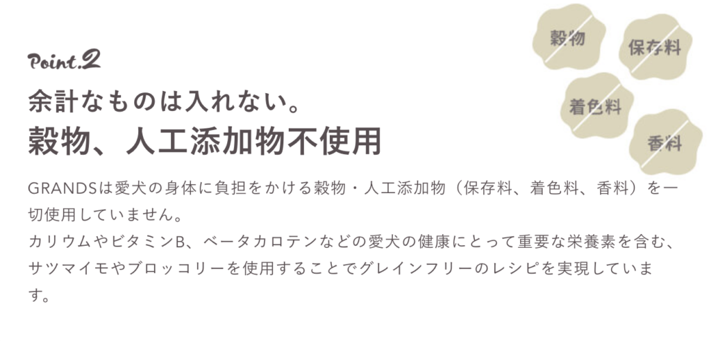 グランツプレミアムドッグフードでは、穀物に敏感な愛犬のためにグレインフリー(穀物不使用)を徹底しています。
