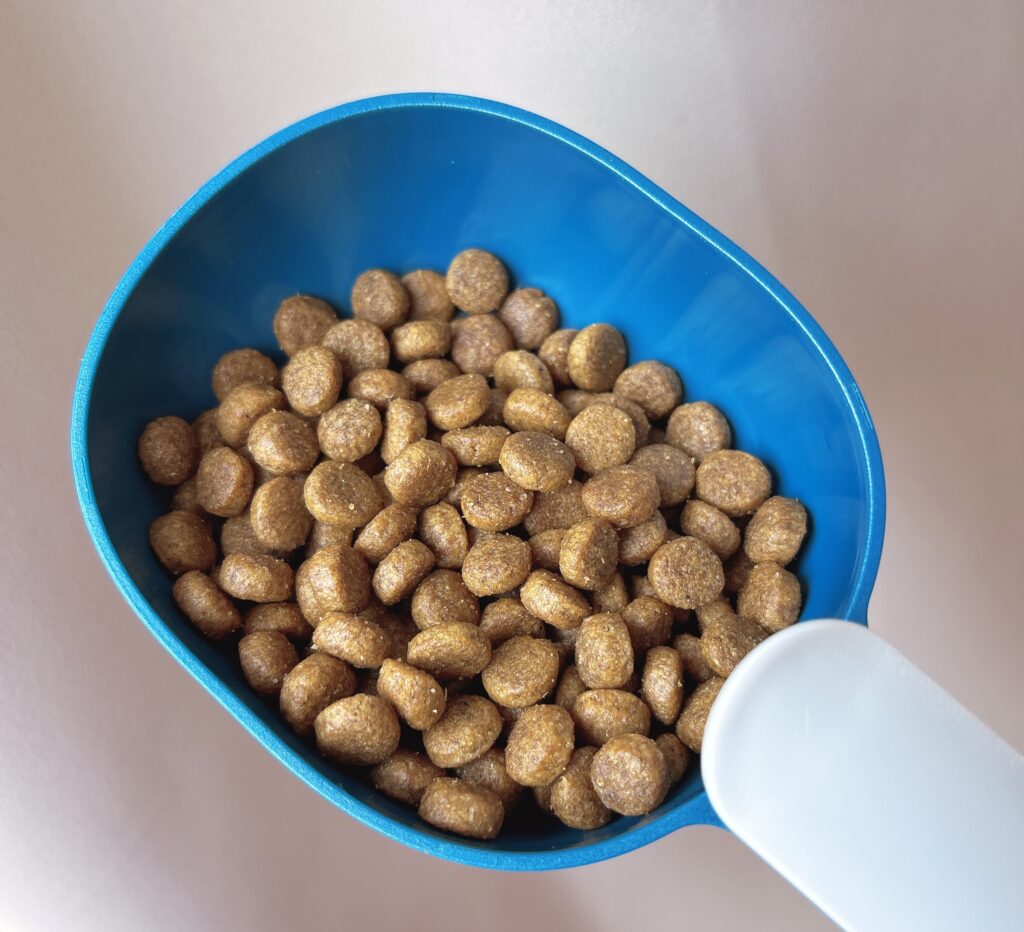 お肉がベースのドッグフードに比べて、糖質やカロリーが控えめなので成長期の子犬や活動量の多い犬種には、手作り食と併用するなどカロリーの調整が必要があると感じます。